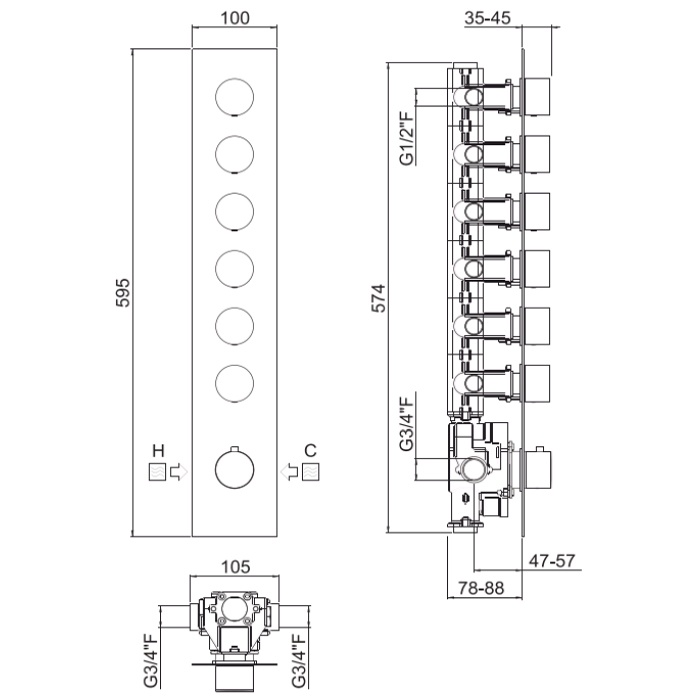 Внутрення часть, Carimali, для термостатического смесителя, с 6-ю независимыми выходами, цвет-хром
